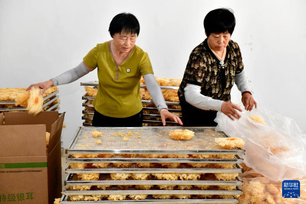 8月31日,在滨州市惠民县胡集镇银丰食用菌种植合作社,工作人员分拣烘干的银耳。