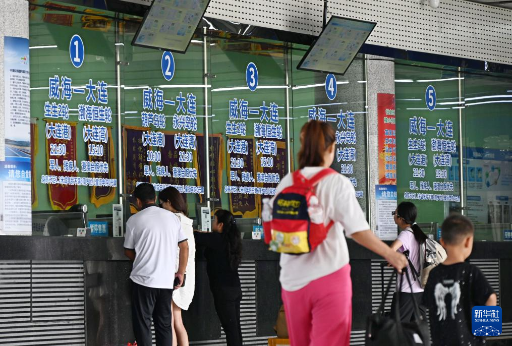 8月31日,旅客在山东港口威海港客运码头售票大厅购票。