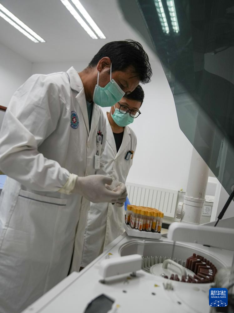 8月30日,林周县强嘎乡卫生院医生东智才让使用生化分析仪检测患者肝功能和肾功能状况。