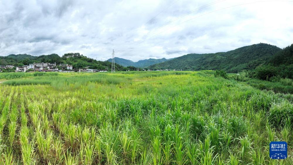 8月21日,工人在福建省永泰县清凉镇北斗村的“珍农菌草富泉羊循环产业示范基地”收割菌草。