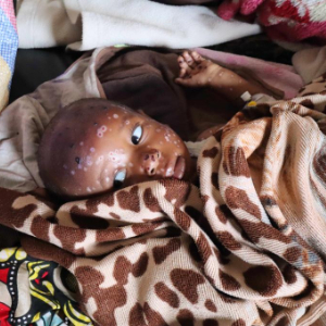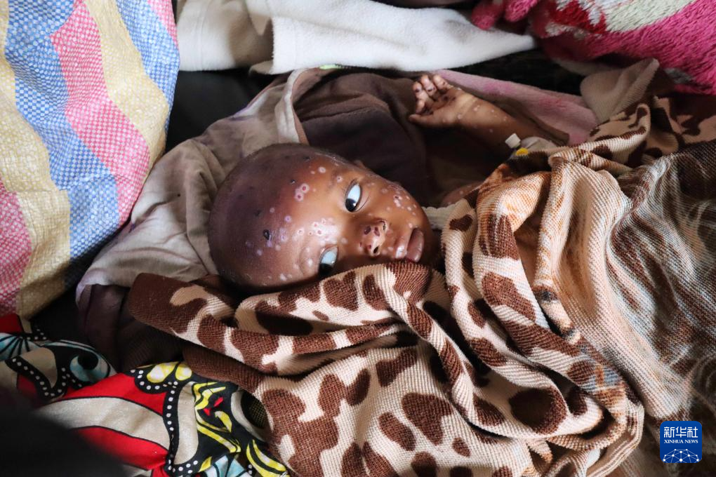 8月31日,在刚果(金)东部的南基伍省首府布卡武市郊区的猴痘治疗中心,一名患病孩童在休息。