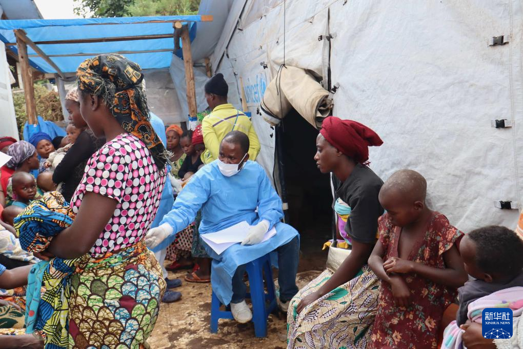 8月31日,在刚果(金)东部的南基伍省首府布卡武市郊区的猴痘治疗中心,患者和家属在等待治疗。