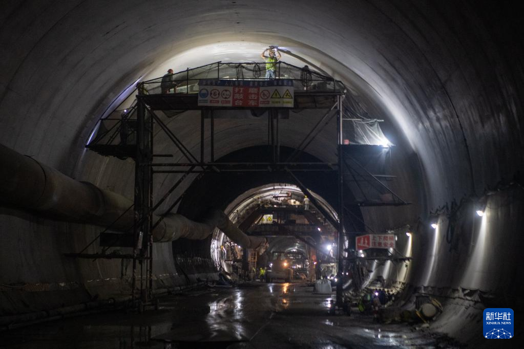 9月1日,工人在渝厦高铁中岭隧道施工作业。