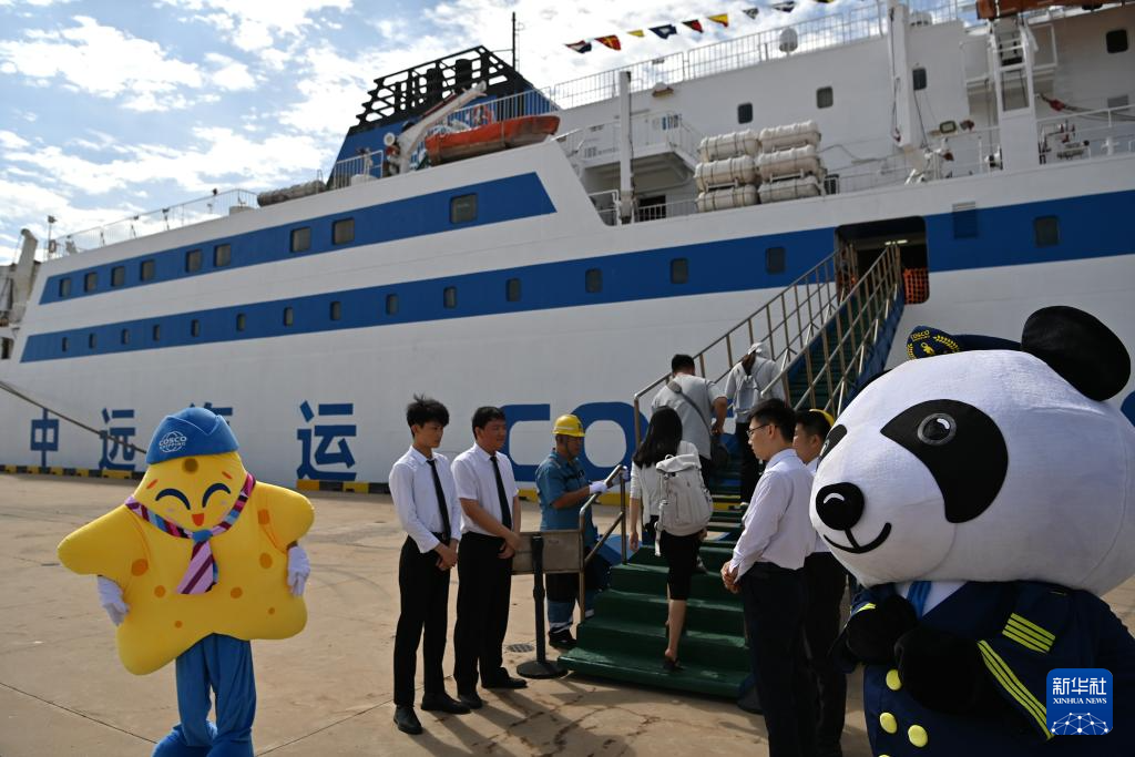 9月2日,参加复航仪式的宾客登上“棒棰岛”号。