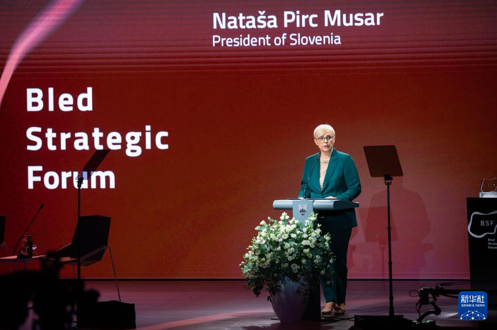9月2日,斯洛文尼亚总统穆萨尔在布莱德举行的布莱德战略论坛开幕式上致辞。