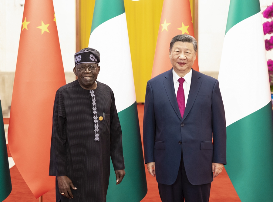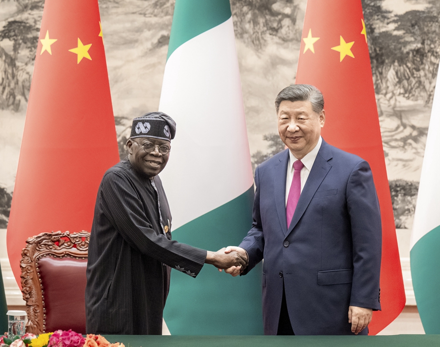 9月3日下午,国家主席习近平在北京人民大会堂同来华出席中非合作论坛北京峰会并进行国事访问的尼日利亚总统提努布举行会谈。