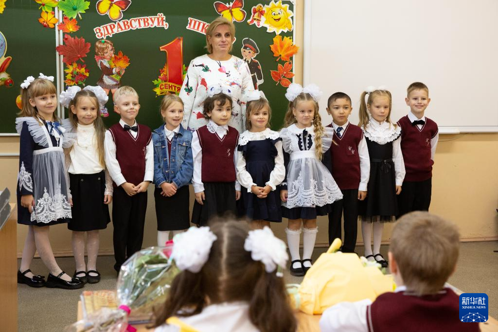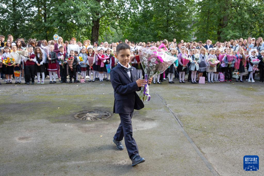 9月2日,俄罗斯圣彼得堡第188学校的一年级新生参加开学典礼。