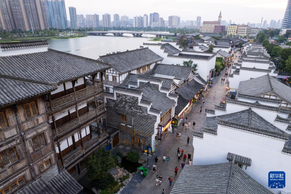 9月3日夜间,游客在常德河街游玩(无人机照片)。