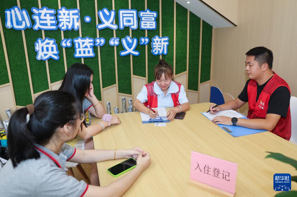 9月4日,在嘉兴市秀洲区高照街道新义村蓝领家园内,前来租住的企业员工办理入住登记。