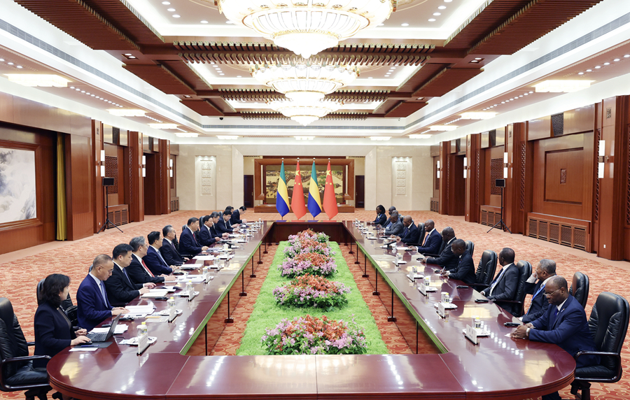 9月4日下午,国家主席习近平在北京人民大会堂会见来华出席中非合作论坛北京峰会的加蓬总统恩圭马。