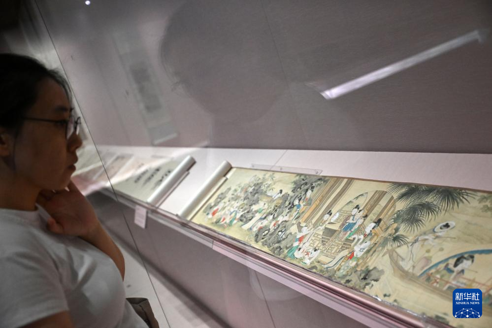 9月4日,参观者在北京故宫博物院观看文徵明湘君湘夫人图轴。