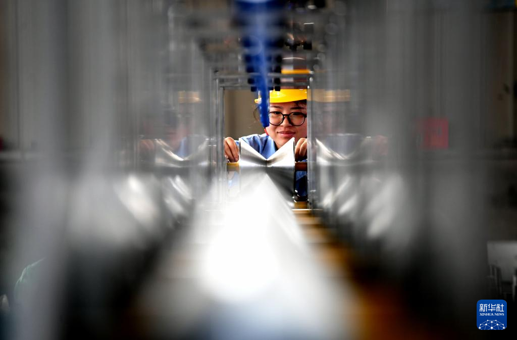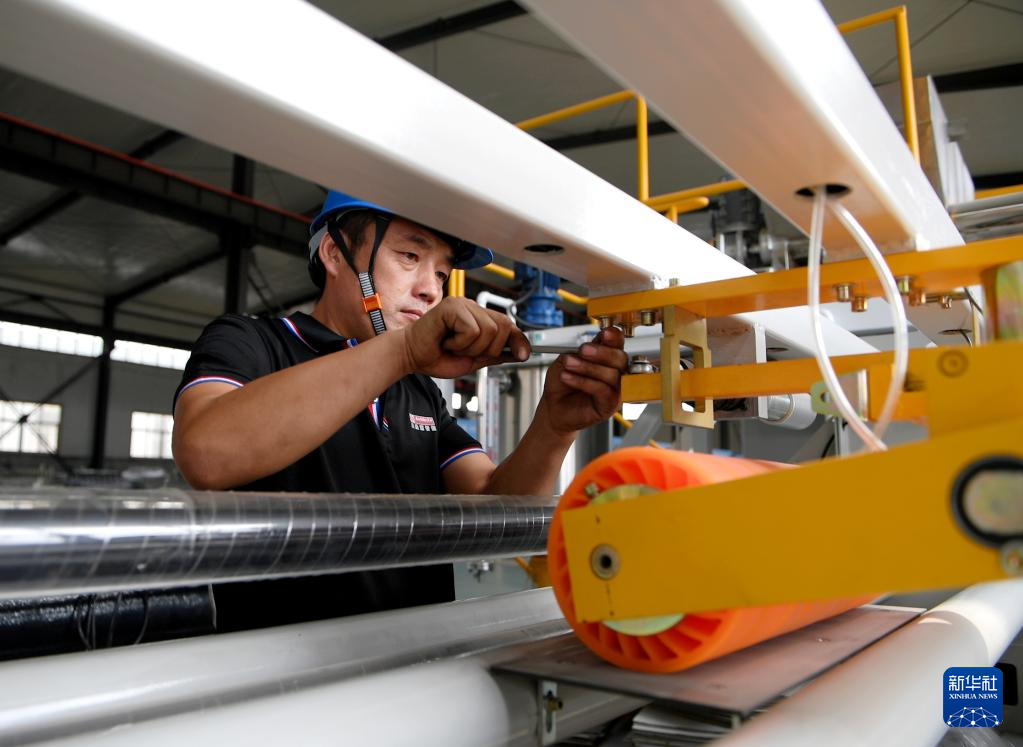 9月4日,工人在阜城县码头镇一家包装机械制造企业生产车间内检测产品质量。