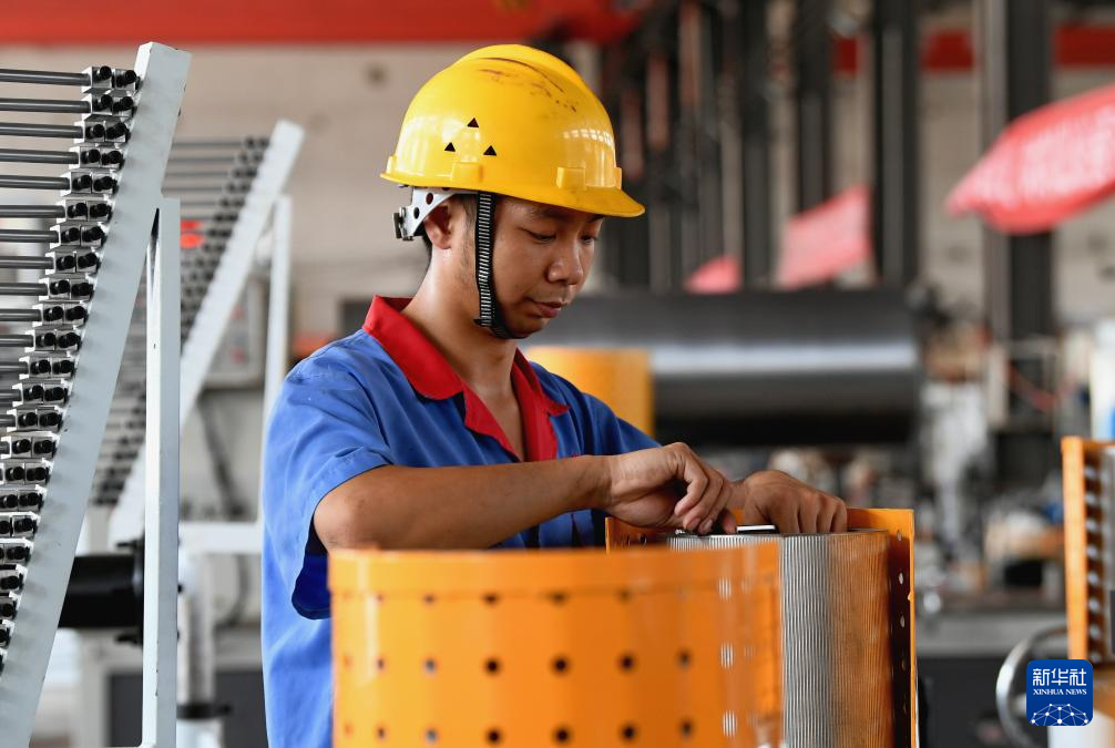 9月4日,工人在阜城县码头镇一家包装机械制造企业生产车间内工作。