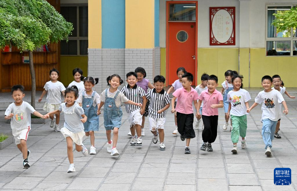 9月4日,9对双胞胎新生在河北省邯郸市邯山区渚河路小学奔跑。