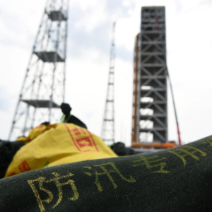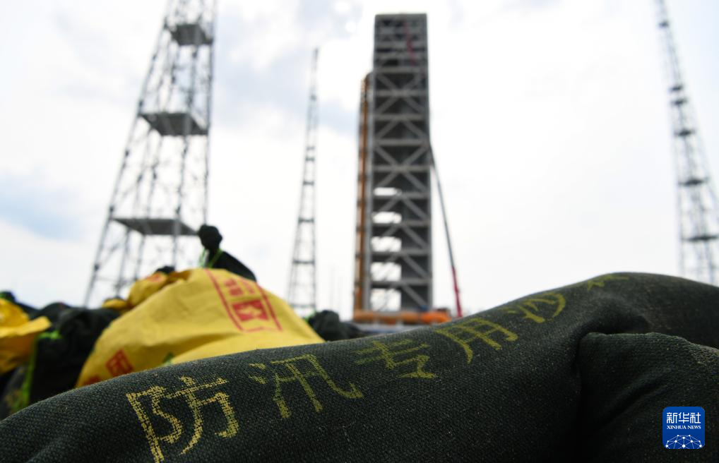 9月4日,在海南商业航天发射场二号发射工位附近,工作人员将防汛专用沙袋装车准备运送到塔架上。