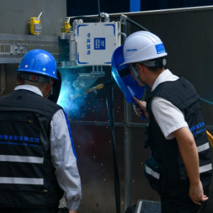 当日,10台智能焊接机器人在深圳湾超级总部基地C塔项目建设现场正式投入使用。本次投用的柔性焊接机器人由中国建筑自行研发,承担项目东塔10根直径2.5米外框钢柱、约7000吨钢构件的现场焊接任务。