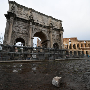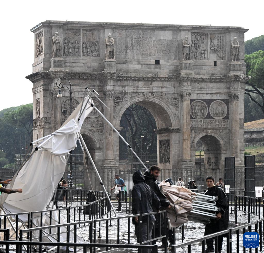 坐落于古罗马斗兽场前的君士坦丁凯旋门在9月3日的雷雨天气中受损。君士坦丁凯旋门建于公元315年,是罗马的地标性建筑之一。