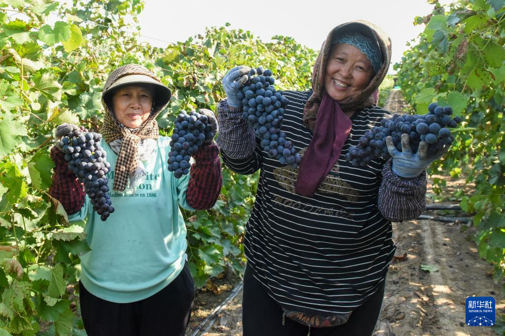 眼下,新疆生产建设兵团双河市双桥镇的葡萄陆续成熟,迎来采摘黄金期,种植户抢抓农时采收葡萄。