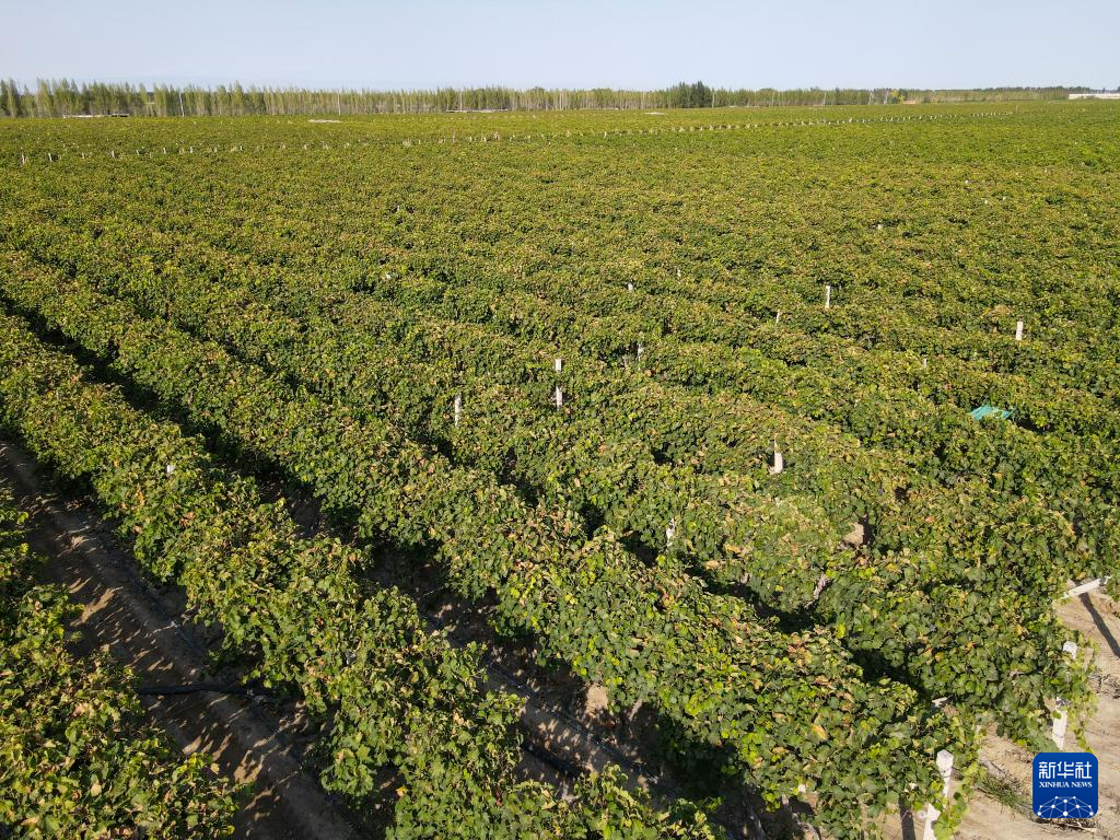 这是9月6日拍摄的新疆双河市双桥镇万亩葡萄田(无人机照片)。