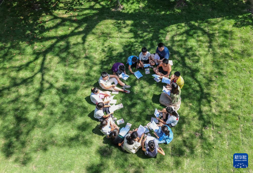 9月6日,斯民小学的学生们参加诗歌讨论课。