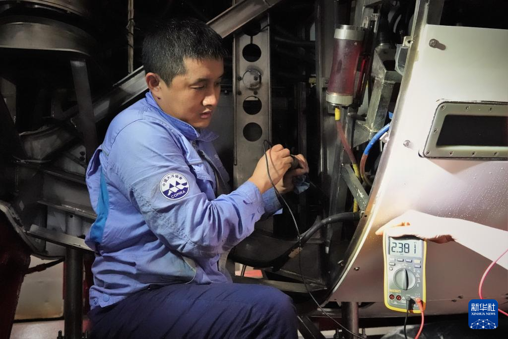 9月6日,“深海一号”船上,“蛟龙号”载人潜水器潜航员齐海滨对“蛟龙号”进行设备检修维护。
