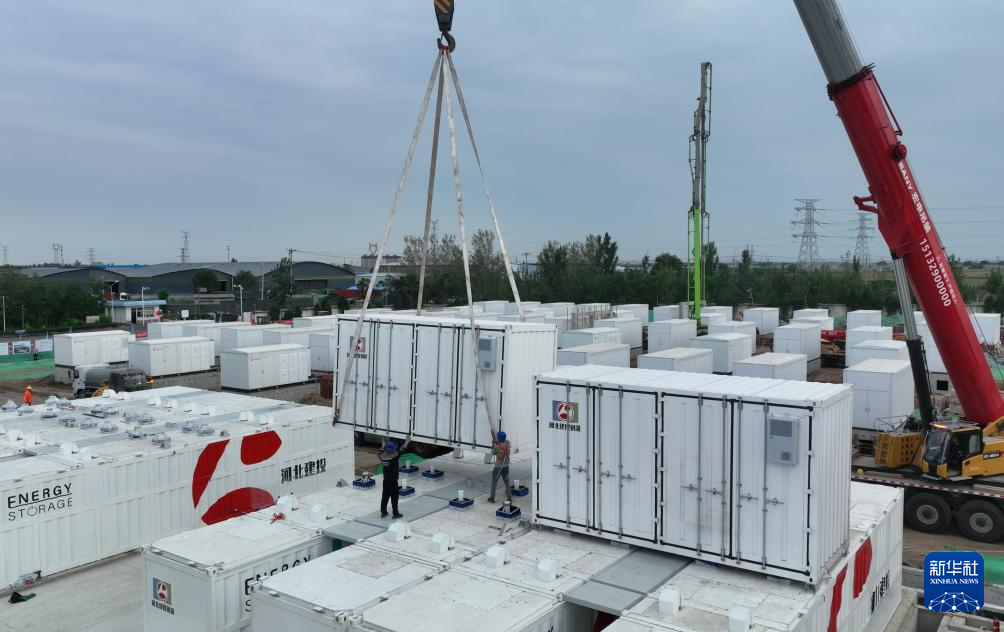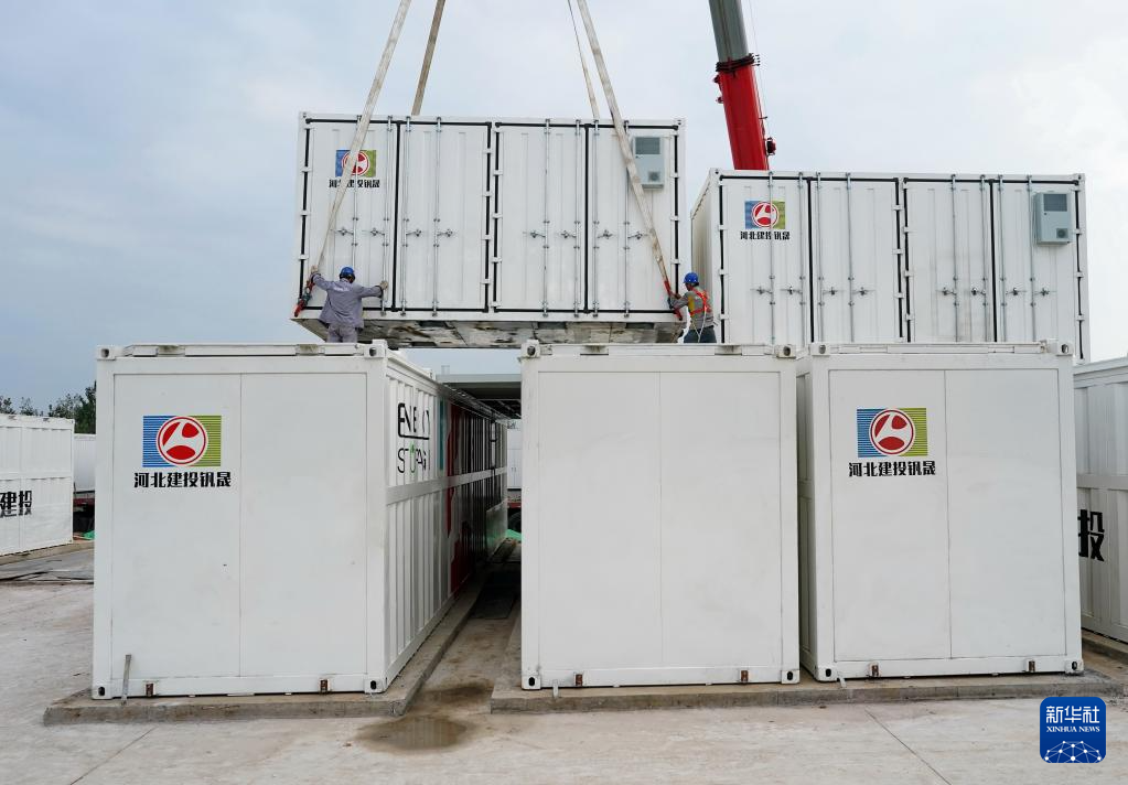 9月6日,工人在位于河北省邢台市信都区的新型电力系统示范工程——独立储能电站项目建设工地施工。