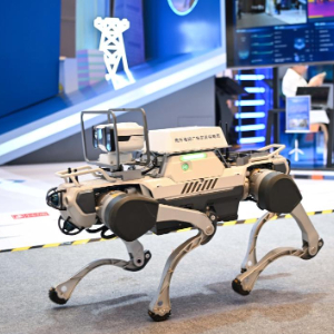 9月8日,网络安全博览会上的企业展示电网巡线机器狗。