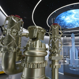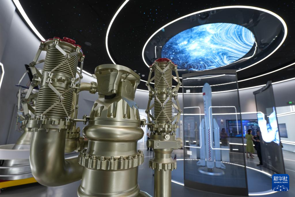 9月9日在无锡商业航天展示馆拍摄的火箭发动机模型。