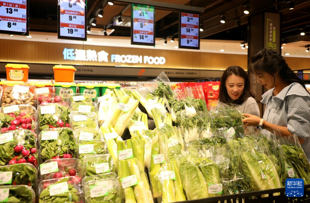 9月9日,顾客在贵州省黔东南苗族侗族自治州从江县一家超市选购蔬菜。