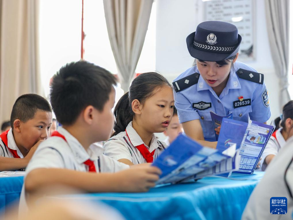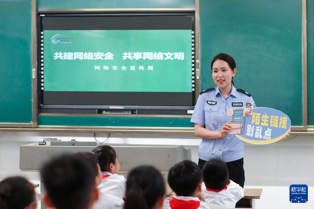 9月11日,公安民警在贵州省铜仁市玉屏侗族自治县印山民族小学给学生讲解网络安全知识。