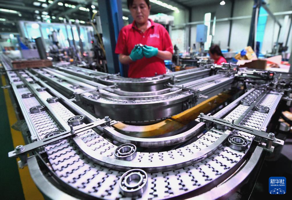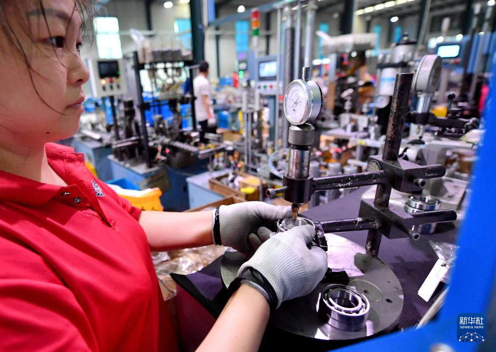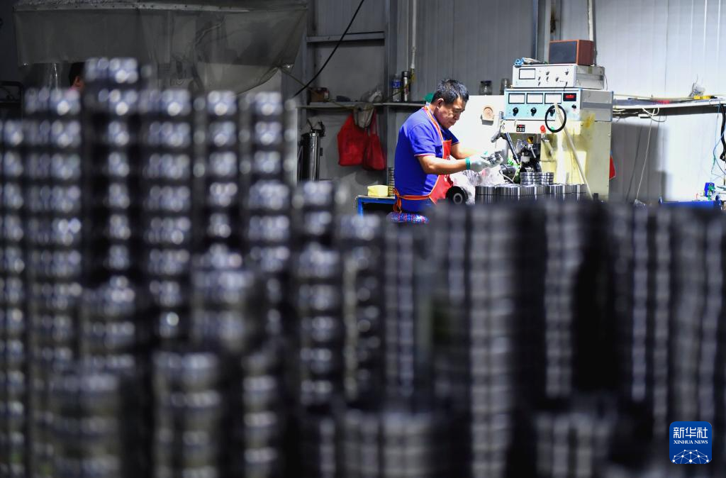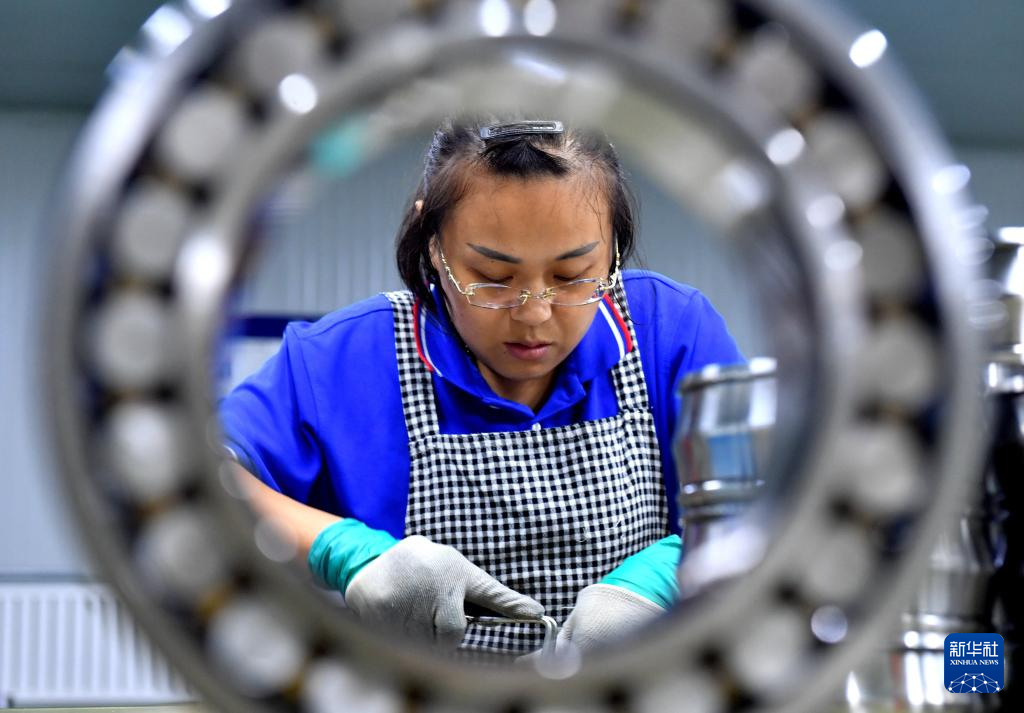 9月10日,工人在临西县一家轴承生产企业车间检查产品质量。