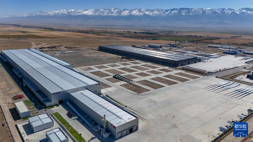 这是9月10日在新疆哈密市巴里坤哈萨克自治县大河新兴产业园拍摄的一家风电装备制造企业。