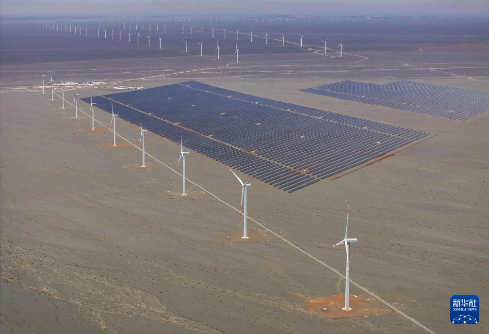这是9月11日在新疆哈密市伊吾县淖毛湖镇拍摄的风机与光伏发电设施(无人机照片)。