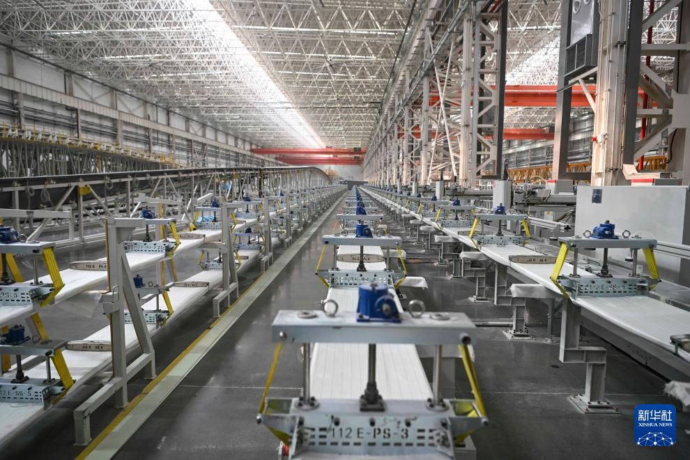 这是9月10日在新疆哈密市高新技术产业开发区拍摄的一家风电装备制造企业生产车间。