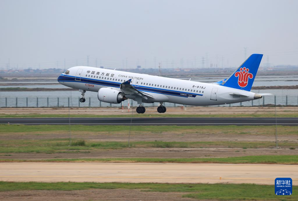 当日,中国南方航空首架C919国产大飞机(编号B-919J)在山东东营机场开展首次飞行训练。本次飞行训练为期2天,将为南航首批C919机型飞行员积累经验,同时也为南航首架C919飞机正式投入商业运行做准备。