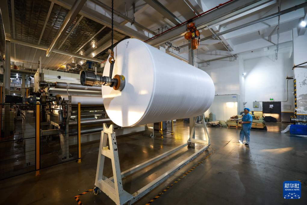 9月12日,工作人员在华昊无纺布有限公司的车间内工作。