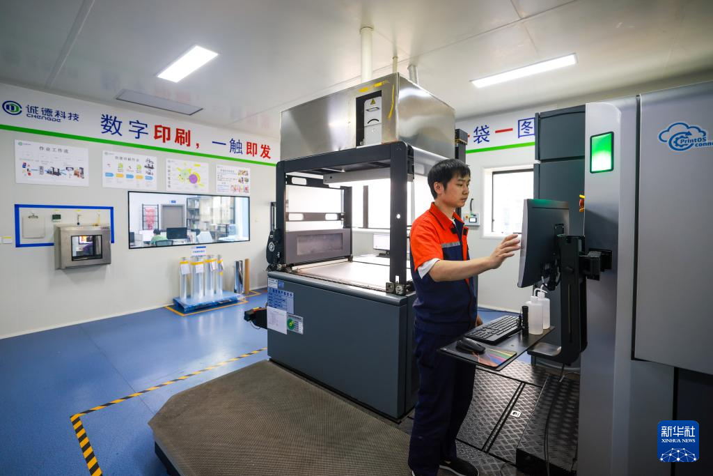 9月12日,工作人员在诚德科技股份有限公司的车间内操作数字印刷机印刷产品。