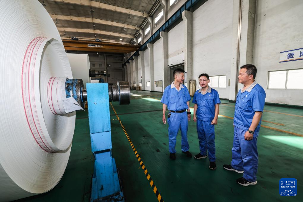 9月12日,在民丰特种纸股份有限公司七分厂生产现场,嘉兴市南湖区的人大代表曹继华(左一)、王洪祥(左二)在了解一线职工的想法,协调解决基层单位、职工群众反映的实际问题和合理诉求。