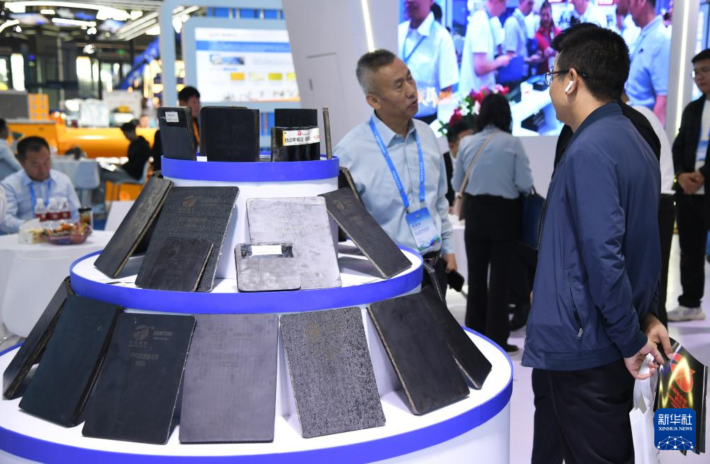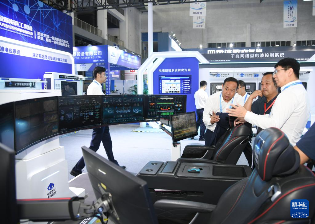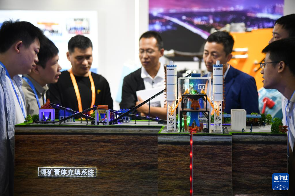 9月13日,观众在展会现场参观煤矿膏体充填系统模型。