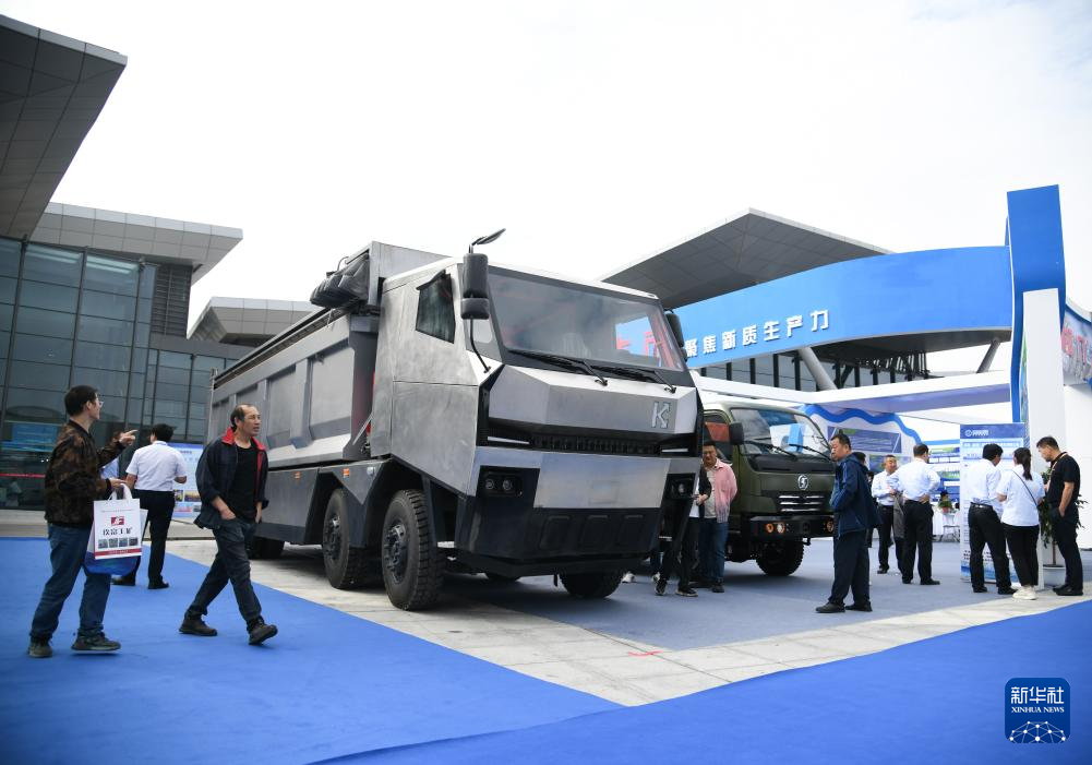 9月13日,观众在展会现场参观一款氢能源重载卡车。