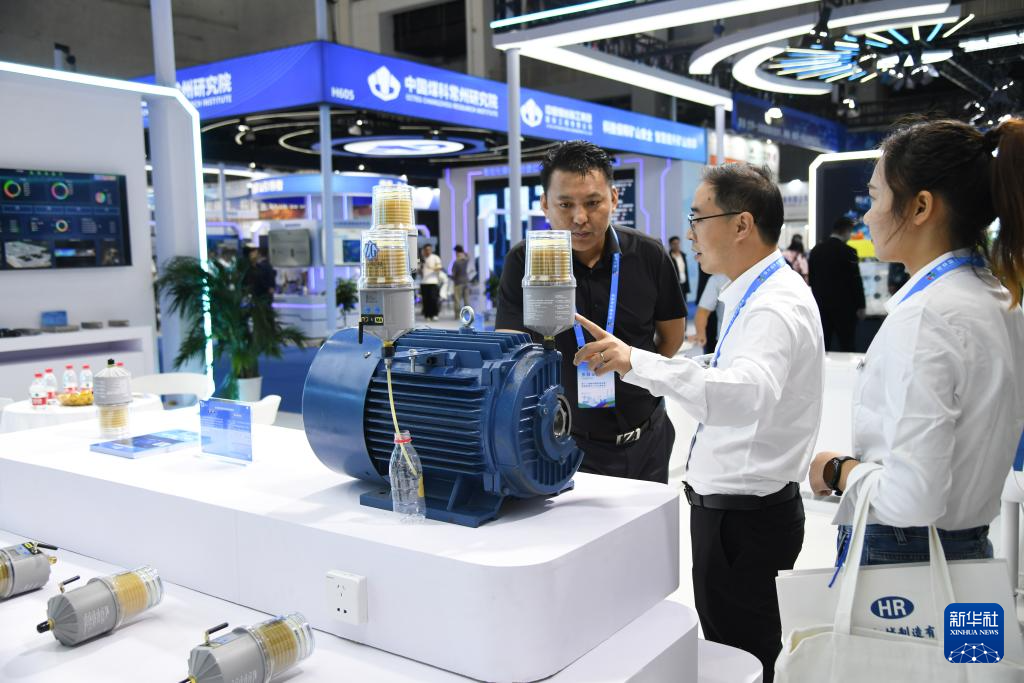 9月13日,观众在展会现场了解一款煤矿自动注油装置。
