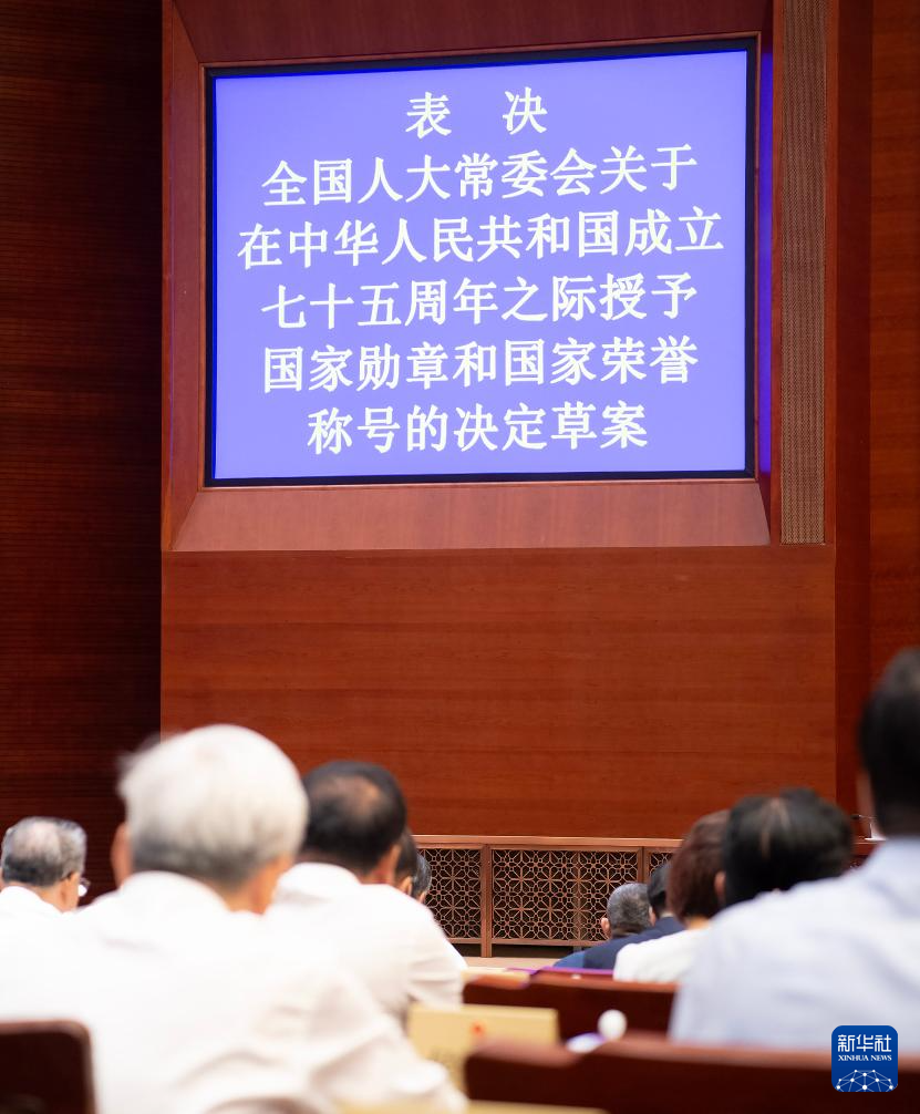 9月13日上午,十四届全国人大常委会第十一次会议在北京人民大会堂闭幕。会议表决通过了全国人大常委会关于在中华人民共和国成立七十五周年之际授予国家勋章和国家荣誉称号的决定。