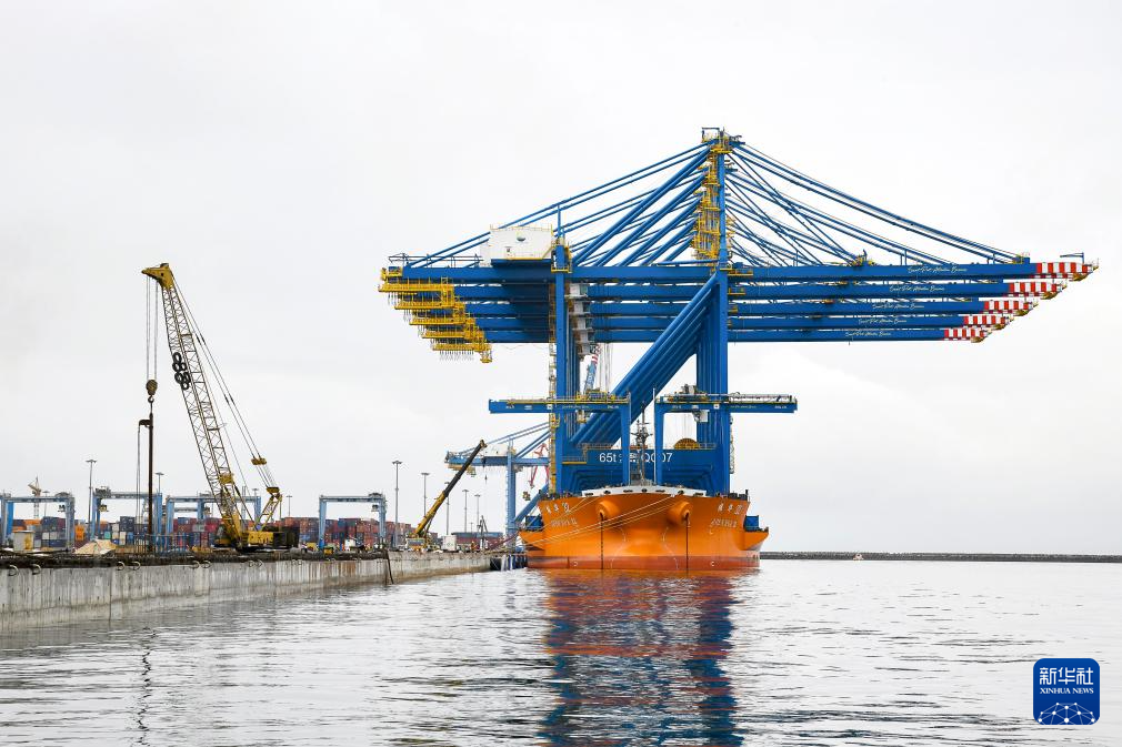 9月12日,一艘来自中国的大型特种运输船运载着数架港口起重机停靠在喀麦隆克里比深水港二期码头。