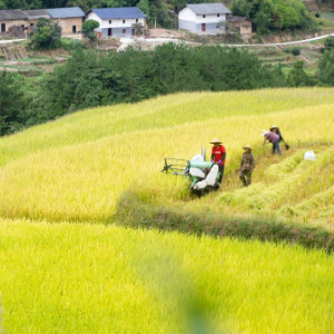 9月13日,湖北省秭归县沙镇溪镇长春村村民驾驶农机收获稻谷。