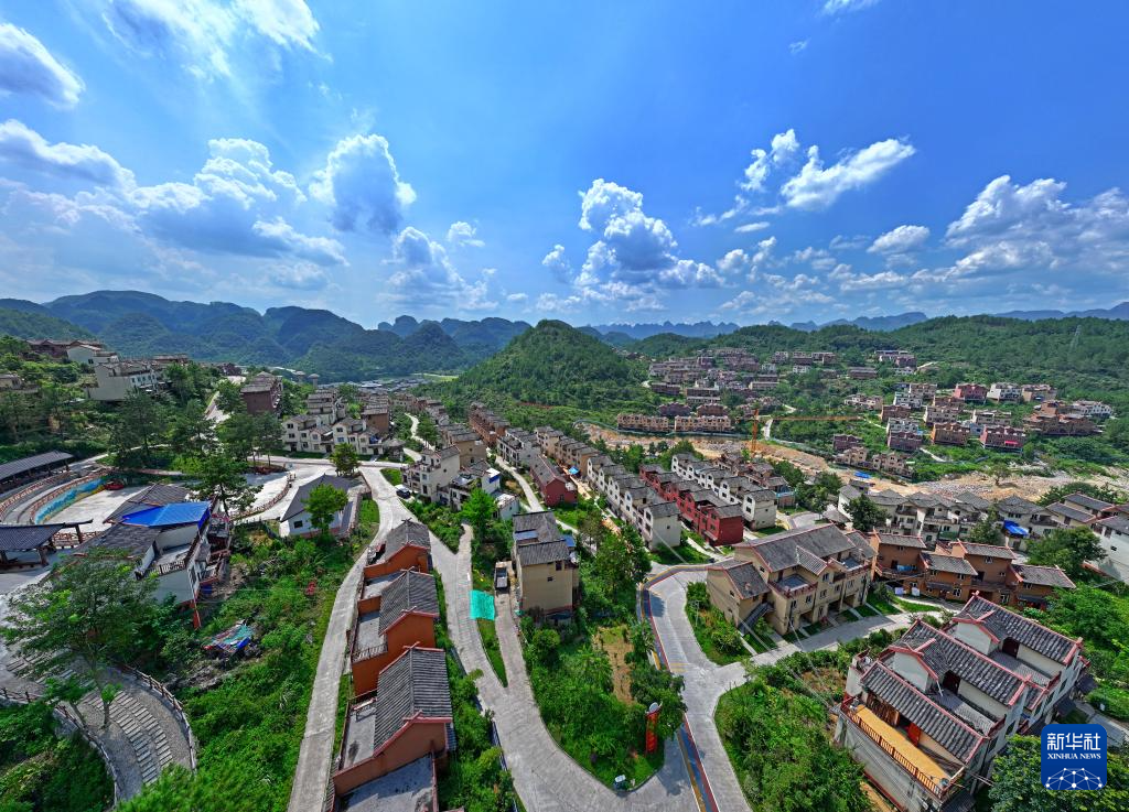 这是广西南丹县里湖瑶族乡朵努社区“千家瑶寨·万户瑶乡”易地扶贫搬迁安置点(8月28日摄,无人机照片)。