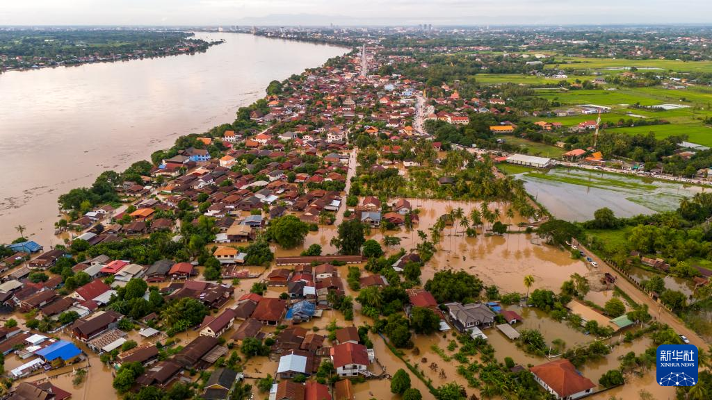 连日降雨导致湄公河水位上涨,老挝多地水位接近或超过警戒线,首都万象部分村庄被淹。