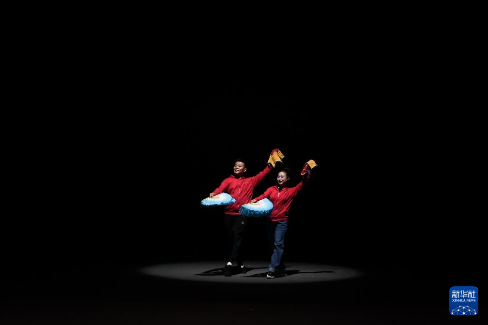 9月10日,在位于吉林省梨树县的吉林省二人转艺术剧院有限责任公司,演职人员在演出前走台练习。