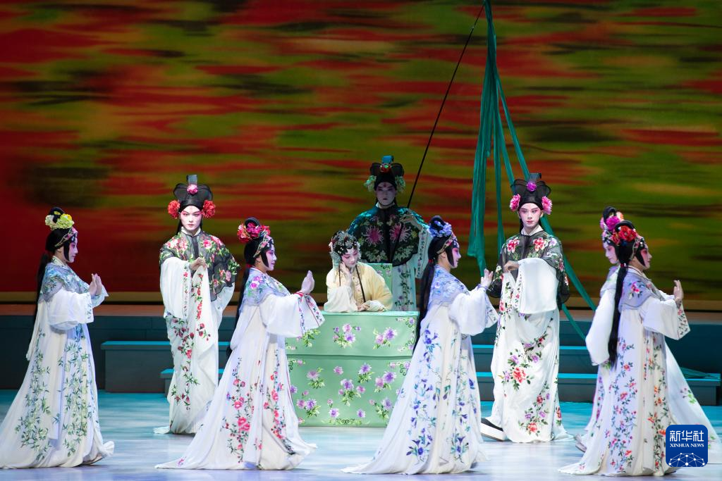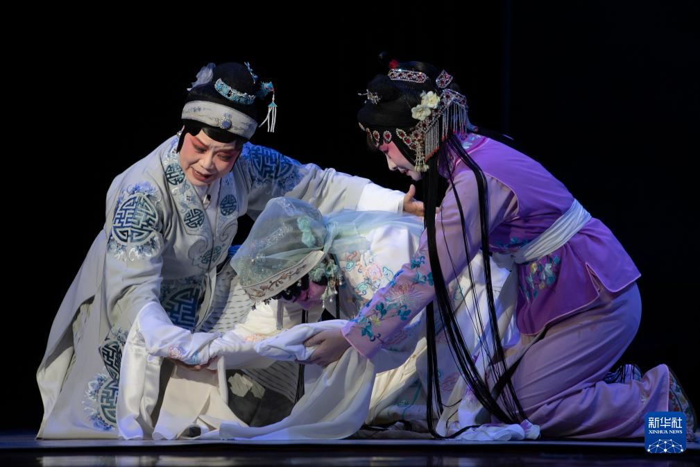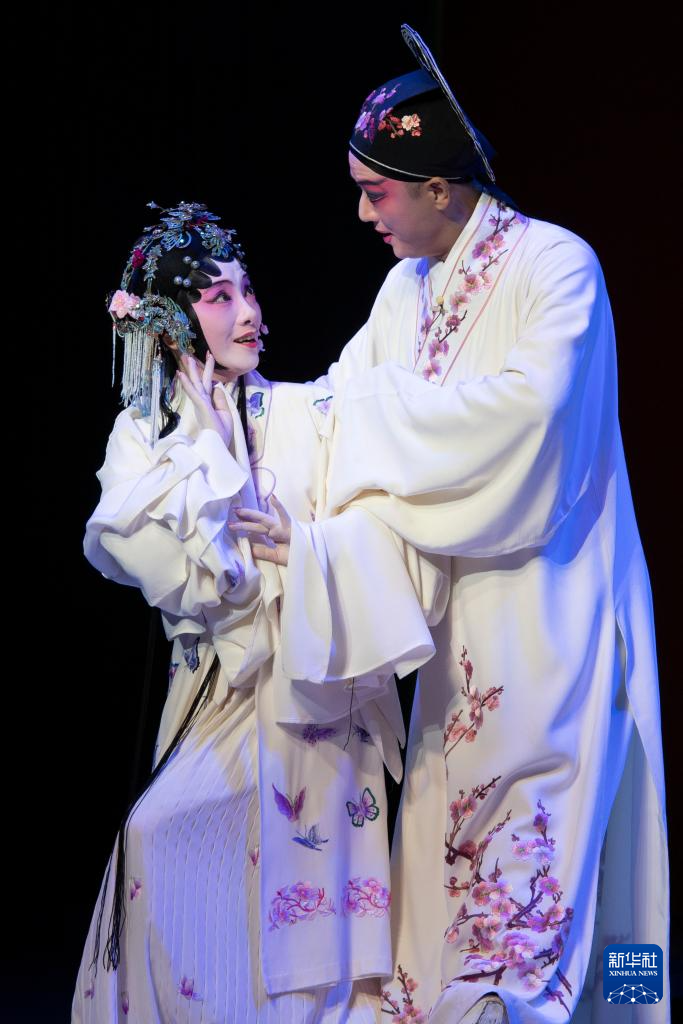 9月14日,饰演杜丽娘的演员沈丰英(左)与饰演柳梦梅的俞玖林在青春版昆曲《牡丹亭》演出中。