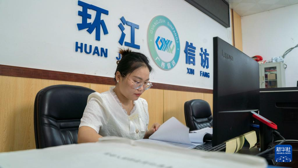 9月14日,谭献祯在环江毛南族自治县信访局工作。