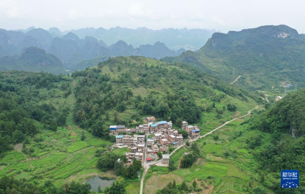 这是广西环江毛南族自治县下南乡中南村上义屯(无人机照片,8月29日摄)。